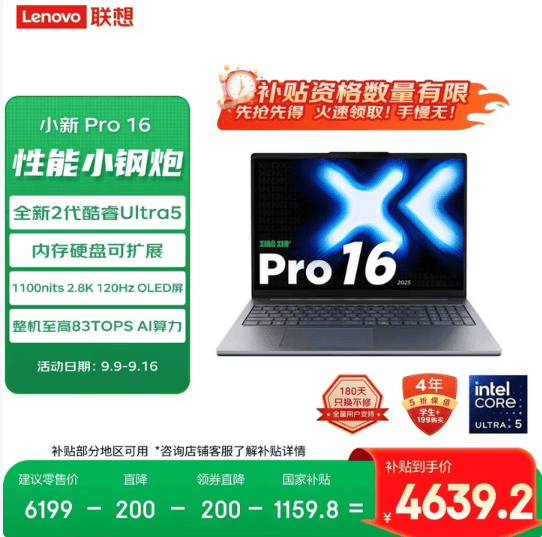 除了联想小新Pro 16 2025酷睿版,酷睿Ultra阵营还有多款高性价比机型,可根据自媒体人的创作场景与偏好精准选择:
